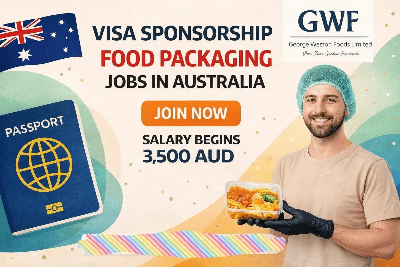 At George Weston Foods Limited, we provide visa-sponsored job placement, visa and work permit assistance, free accommodation, relocation support, competitive salaries, employee benefits, and professional training to ensuring a smooth transition and long-term career growth in Australia.